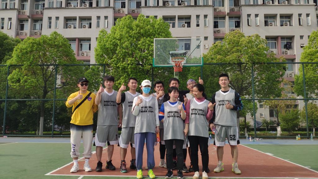 2021年4月17日在阳光校区篮球场上,一场别开生面的篮球赛热烈的展开,来自我院的10名研究生学子参赛,他们分别是队长夏若平,队员王鹏、舒昂、高彪、吴畏成、罗亮、张帅、朱奥琪、张敏以及汪晨颖。