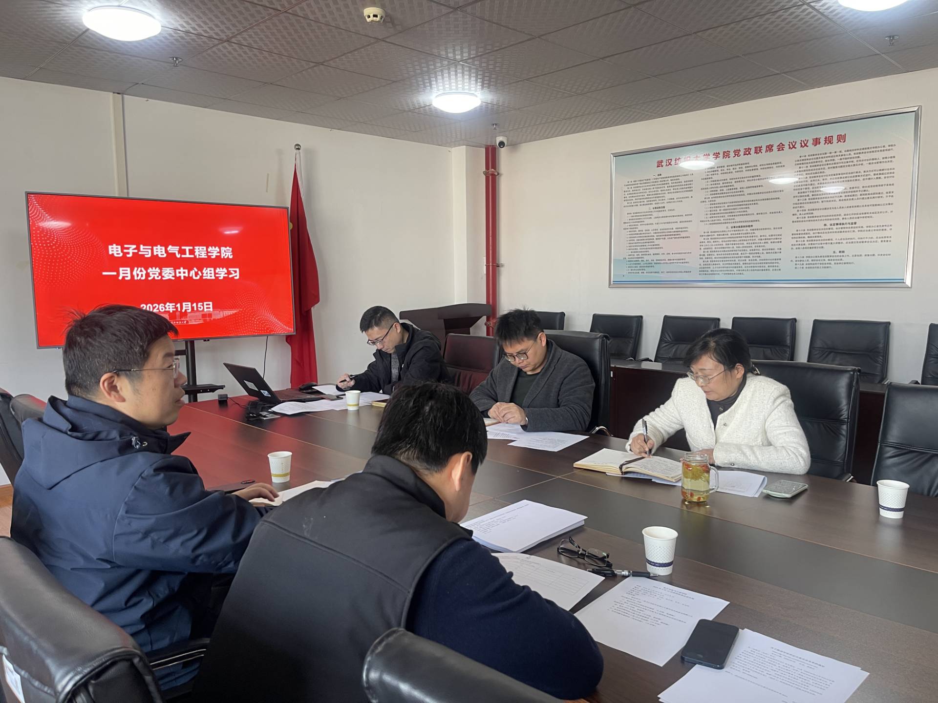 2026年1月15日,yl23411集团在崇真楼南楼5033会议室召开一月份中心组学习会,专题学习《中共中央政治局召开民主生活会 中共中央总书记习近平主持会议并发表重要讲话》。学院党委书记张红鑫主持会议,全体班子成员参加。