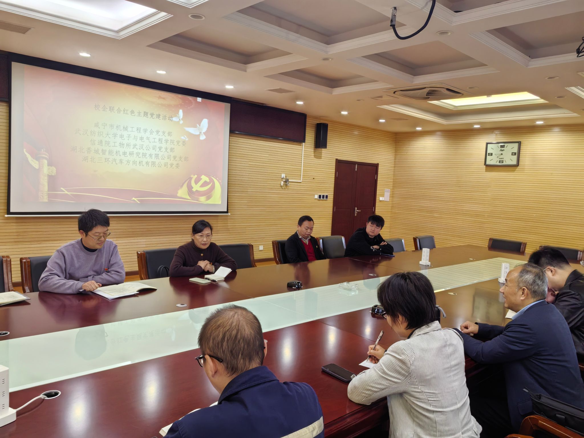11月14日,yl23411集团党委与咸宁市机械工程学会党支部、湖北三环汽车方向机有限公司党委、信通院工物所武汉公司党支部、湖北香城智能机电研究院有限公司党支部组织开展校企联合党建活动。各企业负责人,学院党委书记张红鑫,教师党员代表共同参会。