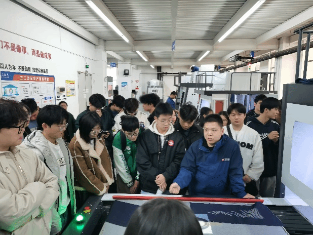 参观过程中,四楼车间的超级激光打标机操作演示成为亮点之一。工作人员为学生们现场雕刻了多只精美的蝴蝶图案,引发了热烈互动。一楼车间则展示了激光技术在纺织领域的应用,如激光水洗牛仔裤和激光烧花工艺,展现了科技与日常生活的紧密结合,让学生感受到光电技术在文化创意领域的潜力。在校企交流环节,双方就毕业生就业、在校生人才培养、学科建设、科研合作等深入研讨。学院表示,希望与企业加强合作,在人才培养和教师实践能力提升等领域取得新突破,共同探索适应社会需求的人才培养路径,努力提升学生的专业能力和综合素质。