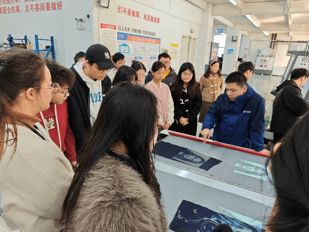 11月28日,师生首先前往武汉三工光电设备制造有限公司,在工作人员的引导下,详细了解了激光雕刻机、激光打标机、激光划片机和太阳能电池片串焊机等高科技设备的工作原理及操作流程。这些设备广泛应用于制造业的多个领域,是现代工业不可或缺的重要工具。学生们通过观看现场演示、听取讲解和亲身体验,深切感受到了激光技术的独特魅力和广阔应用前景。