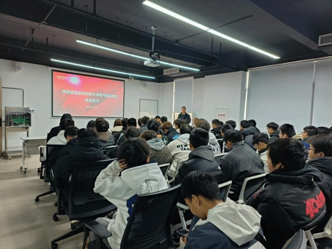 固德威技术股份有限公司是一家以太阳能、储能等新能源电力电源设备的自主研发、生产、销售及服务为一体的高新技术企业,为科创板上市企业。其武汉分公司主要专注于公司产品的研发和测试,同学们实地参观了光伏逆变器性能测试全过程,对光伏逆变器的工作原理有了更加直观的认识,最后聆听了公司王金总监作的《如何成为一名合格的研发人员》报告。