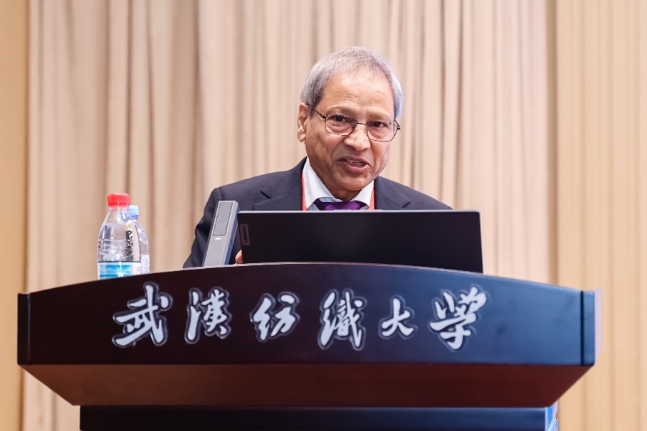 开幕式上,傅欣指出,现代纺织科技正不断向柔性电子、智能穿戴与新能源等前沿领域拓展,并进一步阐释了学校在该方向的独特定位与创新实践——“未来的能源可以是柔性的、可穿戴的,甚至与环境融为一体”,这也正是学校先进能源与未来显示技术中心等多个科研团队所致力攻关的方向。柔性纤维状太阳能电池、可穿戴能源系统等代表性成果,生动体现了纺织技术与光电效能的前沿融合。他强调,主办本次国际研讨会,既是学校服务国家战略的自觉行动,也是推动学科交叉与科研创新的重要实践。