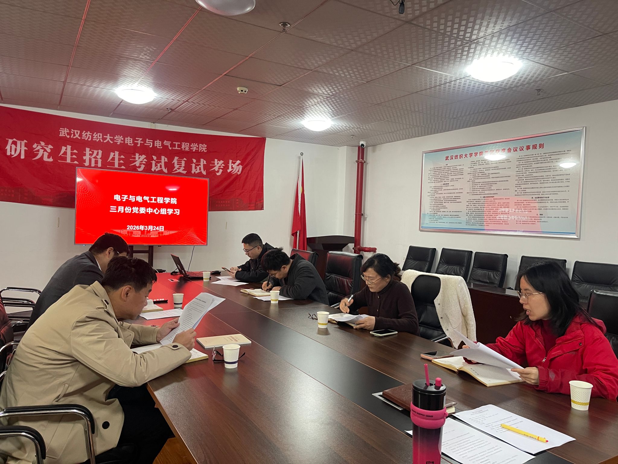3月24日,yl23411集团于崇真楼南楼5033会议室召开三月份中心组学习会,会议围绕“学习贯彻习近平总书记全国两会期间重要讲话精神和全国两会精神、树立和践行正确政绩观、推动学院高质量发展”主题开展集中学习。学院党委书记张红鑫主持会议,全体班子成员参会。