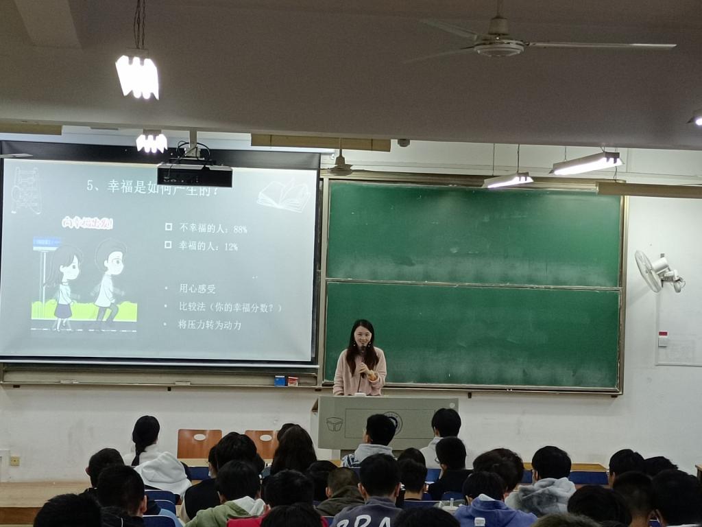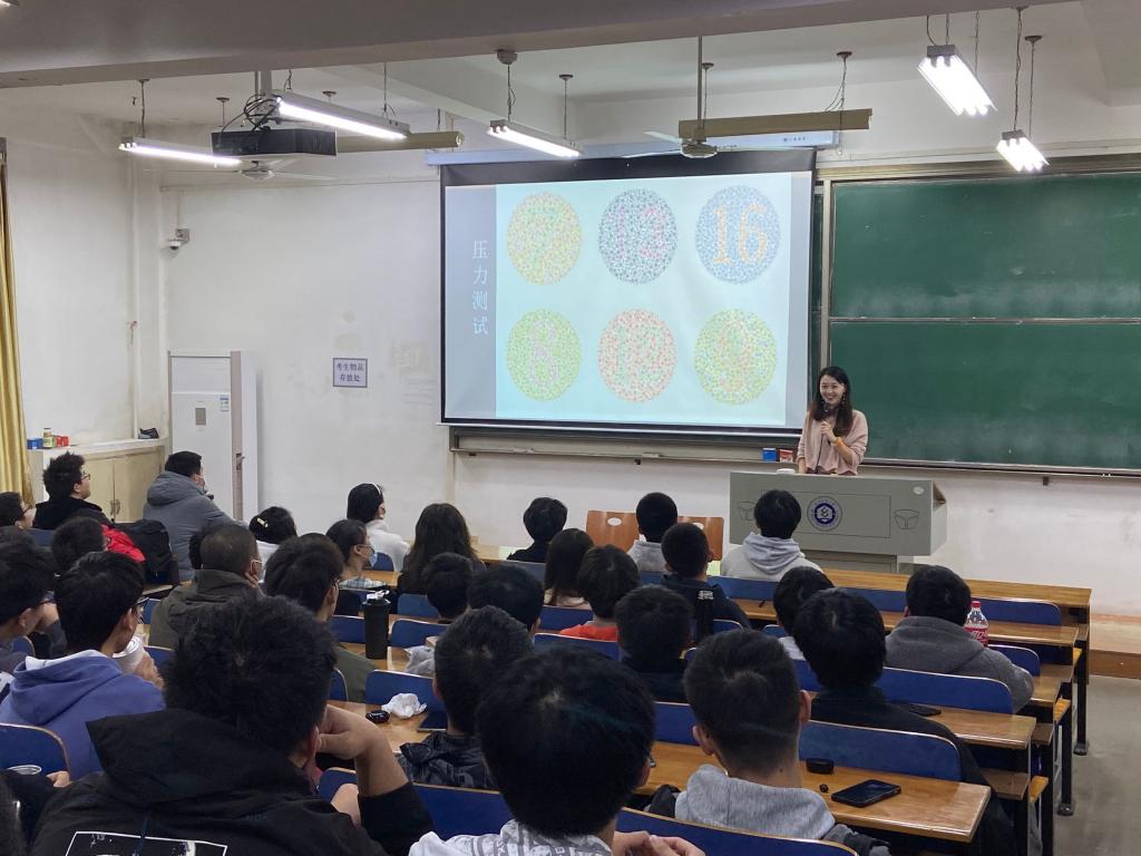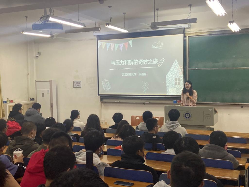 2021年11月28日晚,由yl23411集团主办的“与压力和解的奇妙之旅”心理健康教育主题讲座在崇志楼117教室举行,武汉科技大学心理健康教育中心专职老师梁晶晶担任主讲,我院辅导员涂亚腾、石亚楠老师,以及2021级学生参加了此次活动。
