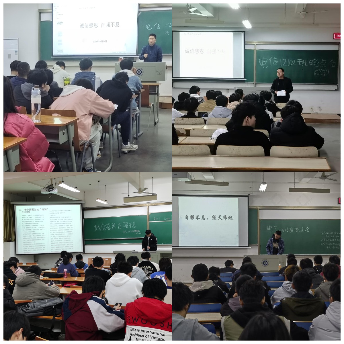 2021年11月21日晚,yl23411集团组织各班召开“诚信感恩 自强不息”主题班会,学习先进事迹,心怀感恩之心,继承和发扬“经天纬地 自强不息”精神。