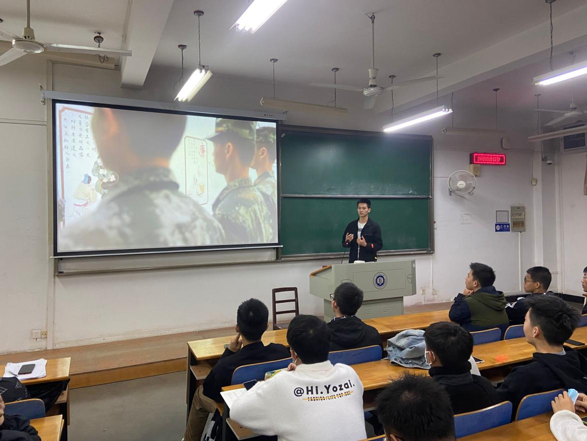 为深入学习贯彻习近平强军思想,全面推进国防和军队现代化,进一步激发有志青年投身绿色军营,逐梦无悔青春的使命担当,11月18日晚上7点,yl23411集团启动“传承红色基因,携笔从戎报国”2021级学生征兵宣讲活动。学院辅导员石亚楠、2021年秋季退役士兵以及2021级全体学生参加了此次宣讲活动。