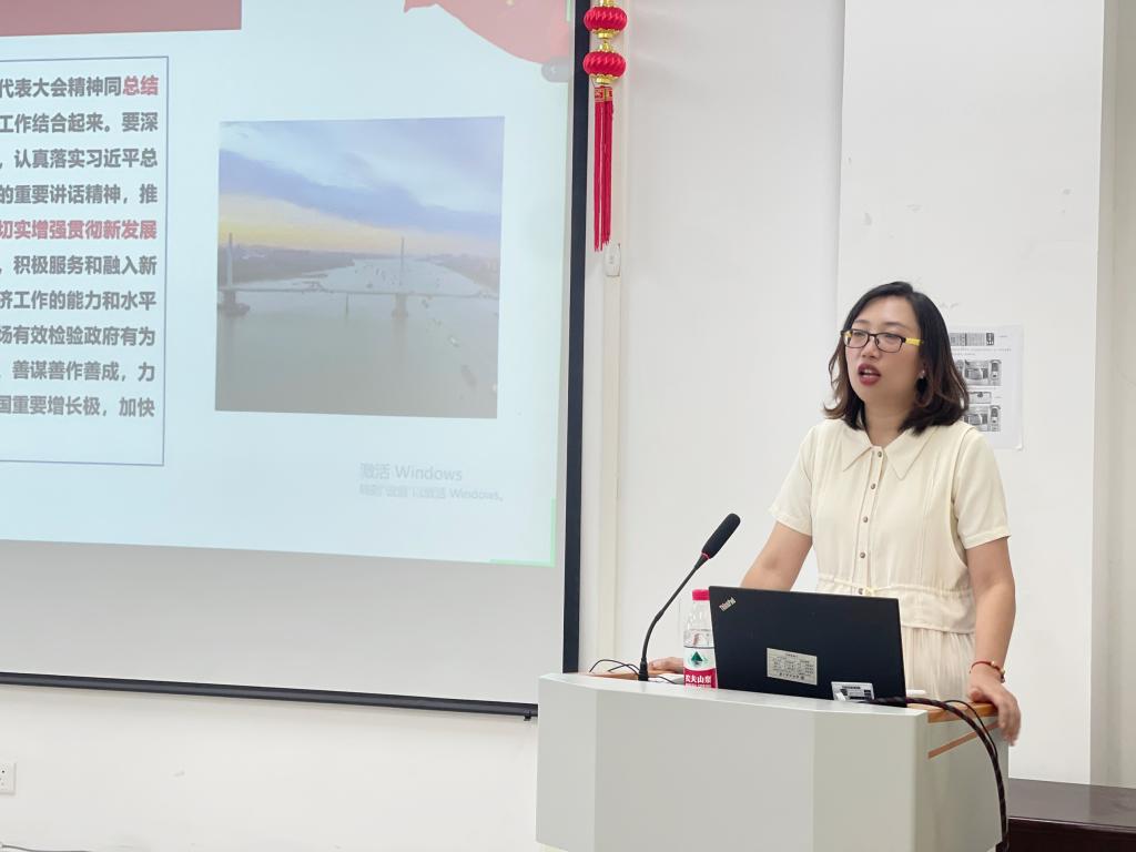 会上,刘艳教授介绍了湖北省第十二次党代会的召开情况,并从过去五年的工作、准确把握新发展阶段湖北面临的新形势新任务、完整准确全面贯彻新发展理念、加快建设全国构建新发展格局先行区、坚持和加强党的全面领导,切实提高建设全国构建新发展格局先行区的能力和水平等五个方面对湖北省第十二次党代会报告的主要内容进行了全面深入解读。刘教授指出,大会报告明确了今后五年湖北工作的总体要求、奋斗目标、重点任务和具体举措,是指导今后一个时期湖北发展的行动纲领。刘教授强调,作为湖北高校,yL23411永利集团在科研创新上坚持“抓前沿、上水平、入主流、显特色”的策略不放松,通过此次党代会的召开,我们要找准学校和学院教育发展的目标和定位,充分发挥高校高水平人才培养主力军、区域创新体系建设排头兵、增强发展新动能策源地作用,为湖北建设全国构建新发展格局先行区作出纺大的贡献。