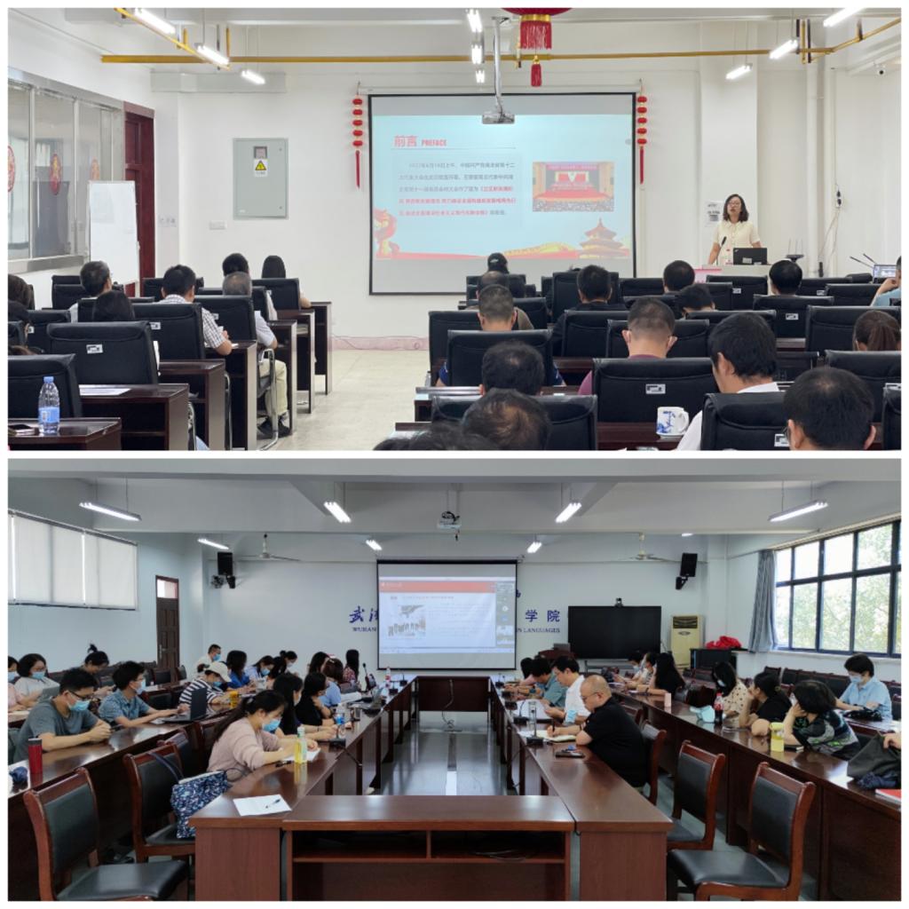 2022年9月8日下午14:00,崇真楼南楼A6013会议室举办了一场省第十二次党代会精神宣讲会,学校宣讲团成员、马克思主义学院刘艳教授应邀以《学习贯彻习近平总书记考察湖北重要讲话精神,推进落实省第十二次党代会部署》为题作了专题报告。此次宣讲会采取线上线下相结合的形式开展,yl23411集团和外国语学院全体教职工参加,宣讲会由yl23411集团党委书记张红鑫主持。