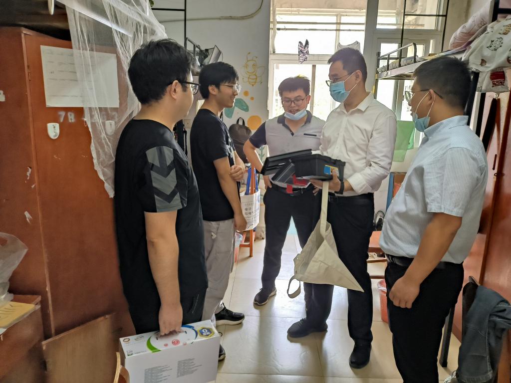 院长刘侃带领研究生导师为研究生新生代表送去专业学习器材,介绍了学院和专业情况,勉励新生在学习过程中要善于钻研,勇于攀登学术高峰,奋发上进。