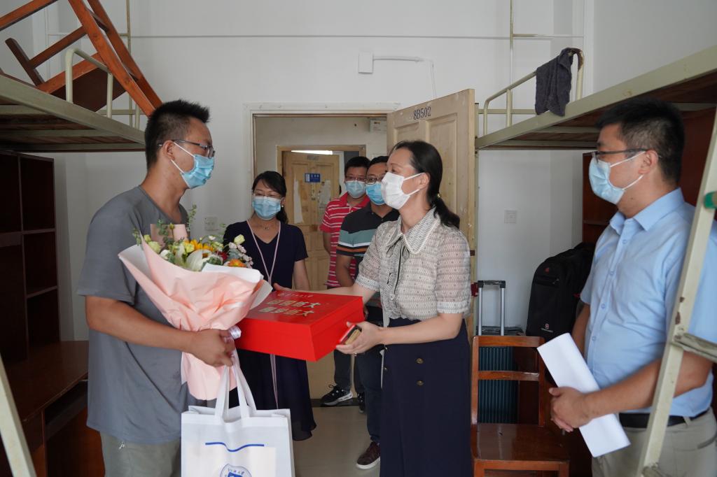 校党委常委金艳教授、招就处处长周闰禄深入宿舍,看望我院结对新生,赠送精心准备的礼包。她详细了解了学生的情况,对他的到来表示欢迎,勉励他尽快适应大学生活,快速转变角色,脚踏实地、珍惜时光,志存高远、实现梦想。