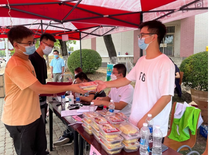 新生入校后静态管理期间,党员教师带头搬运盒饭,进寝室为新生发放盒饭,用行动和汗水为新生上了大学第一堂课。
