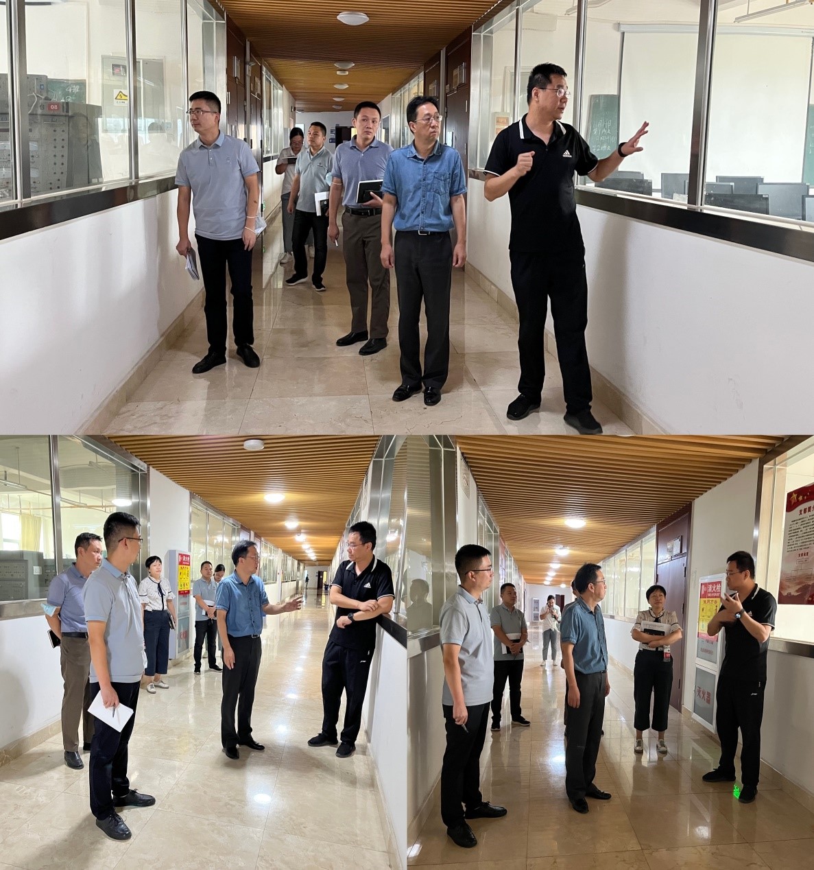 随后,在刘侃院长的带领下,各位领导走进学院的本科教学实验室和科研实验室,与实验室负责人、实验教师以及做实验的学生进行了交流,询问了实验室软硬件建设情况,目前实验室存在的问题和困难,实验室安全防控及实验室安全教育等情况。走访过程中,各实验室干净整洁,布局合理,用电规范,规章制度上墙,警示标识明显,消防设施齐全,安全责任到人,尤其是学院实验室按照“产学结合,科教融合”的理念,实现了“研赛一体,课赛结合”的本科生、研究生实践育人模式。调研小组对我院实验室建设给予了高度的肯定,强调实验室建设程度代表着学院发展的水平,在实验室建设尤其本科教学实验室建设中须坚持“学生为本”的理念,充分利用实验室开设更多的实验实训课程,加强实验室资源的开放共享。