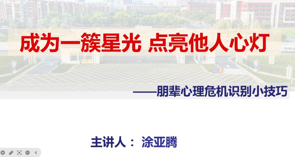 为进一步提高心理委员业务能力,提升学院心理健康教育管理工作水平,11月26日,yl23411集团线上开展了以“如何发现并及时处理心理危机”为主题的心理委员培训会。本次培训会由涂亚腾老师主讲,学院全体心理委员参加培训。