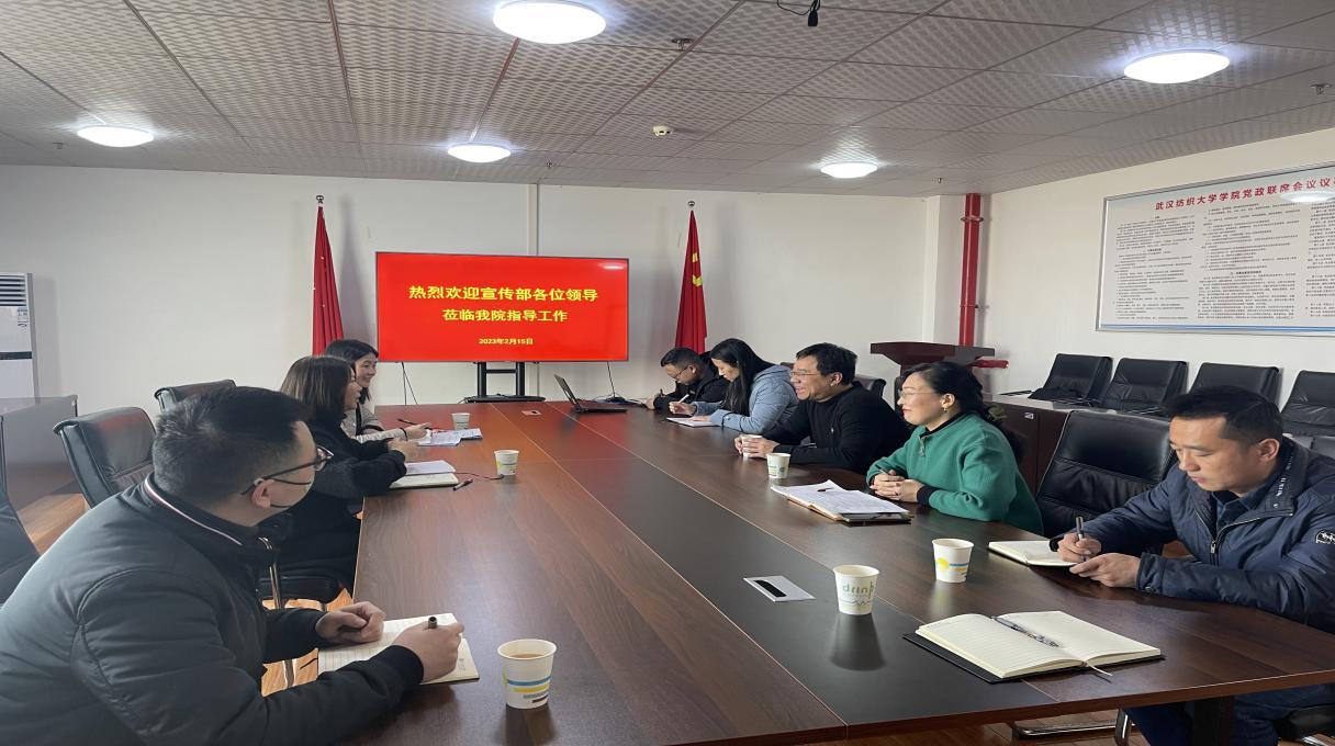 近日,学校宣传部部长刘戈一行到yl23411集团调研新学期宣传工作,并就学院如何更好地开展宣传工作提出指导意见。院长刘侃、学院党委书记张红鑫、副书记肖乃涛,以及学院部分宣传主骨干参加调研。