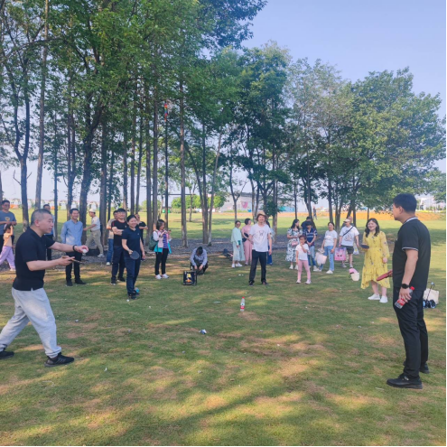 在风景如画的拾光牧场,教职工们参与了各种趣味运动活动,唱歌、放风筝、乒乓球、踢毽子、步行比赛等。此起彼伏的加油声、欢笑声,为这个风景如画的牧场增添了几分欢愉与生气。这些趣味活动既锻炼了大家的身体,又增进了彼此之间的交流和感情。在步行比赛的活动中,牟迪老师获得了徒步比赛一等奖。