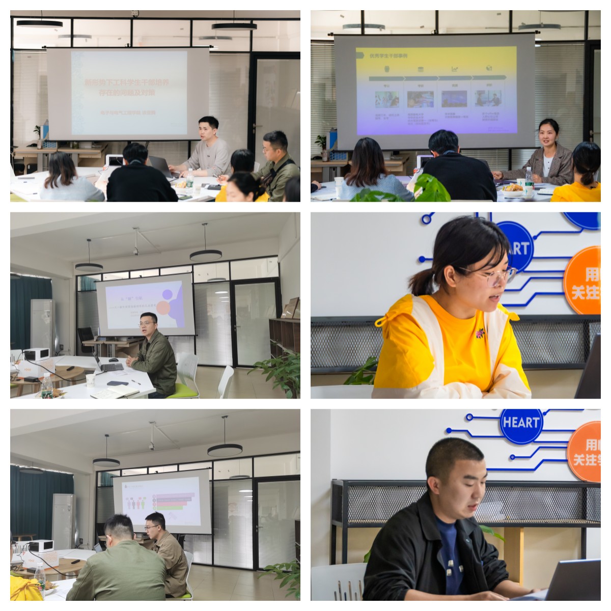 本次沙龙,六位辅导员老师围绕“新时代学生干部的培养与管理”主题,结合所在学院专业特色和工作实践经验展开交流。yl23411集团涂亚腾老师以《新形势下工科学生干部培养的问题及对策》为主题,结合工科学生干部的特点,提出加强学生干部的思想建设,用好网络,加强学生干部的日常培训等措施加强学生干部培养。数理学院方媛老师以《朋辈领航,星火聚光——学生干部的处境和发展分析》为题,提出深化职责认知,提升业务能力;注重能力培养,选拔后加强培养和指导;给予资源倾斜等措施提升学生干部的能力和素养。机械学院方林老师以《从“新”引航——大一新生班委选拔培养的几点思考》对新生班委的选拔任用提出思考,他总结为说给班委听、启发班委想、带着班委干、督促班委练,从而使新生班委克服“官”念,养成“团结、教育、服务”的工作作风,从而增加其战斗力和号召力。材料学院曾玉竹老师以《“05后”学生干部培养的新情况、新问题、新思路》对“05后”学生以及学生干部进行了分析,她认为辅导员老师是学生干部培养与管理的主导力量,选人比用人重要,培养比管理重要,过程比结果重要,人格魅力比行政指导重要。环境工程学院张宇航老师以《培养有责任意识的学生干部》为题,从强化角色意识、成才意识;培养责任意识、自律意识;培养服务意识、回馈意识等几个方面提出加强培养有责任意识的学生干部的方式方法。传媒学院汤若釴老师以《如何发挥学生干部在宿舍党建育人工作中的先锋作用》为题,探索学生干部在新时代学生宿舍党建工作新模式中的作用和现状,他认为构建“一室一廊一栋一中心”一体的党建育人主阵地,能有效提升学生干部在宿舍党建工作新模式中的作用和效果。