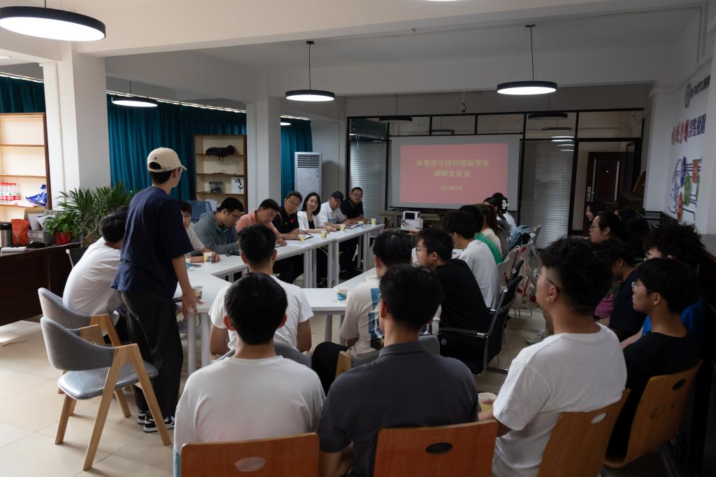 5月19日,体育部党总支书记兼主任杨志强带领体育部班子成员一行到我院8栋宿舍楼,与结对班级、结对寝室、结对学生开展调研交流会,电子电气学院副院长韩谷静、电信12201班学生参加,会议由牟迪主持。