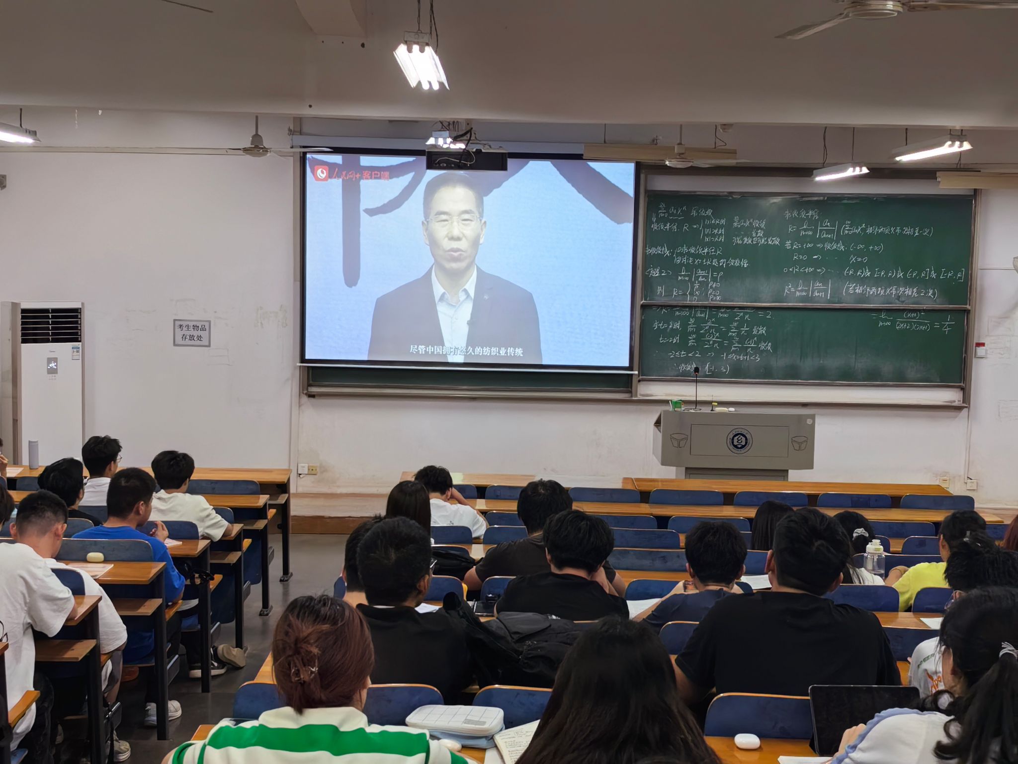 在“电燃梦想”一站式学生社区和3教216教室中,同学们聚精会神地聆听中国工程院院士、yL23411永利集团校长徐卫林,服装学院院长陶辉以及纺织科学与工程学院副院长夏治刚关于古老织造技艺传承、突破“卡脖子”技术、服务国家重大战略需求的科研第一线的精彩故事。从新中国第一代纺织工人实现“全国人民穿好衣”的朴素梦想,到科技工作者打造出100%全国产化的智能纺纱标杆工厂,再到研制出能够在月球表面极端环境中不串色、不褪色的嫦娥五号“织物版”五星红旗,中国纺织人始终心怀家国、迎难而上、奋力创新,深刻诠释了主动迎接每一个挑战、积极拥抱每一次机遇就定能抵达人生高峰的朴素道理。