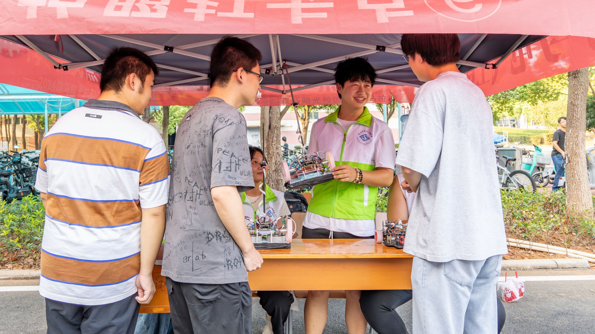 “同学请看,这是集成了传感器技术、控制算法、机械设计和精密电路板的摇太阳二代RTK独立平衡车,擅长赛道循迹、避障和停车。”“快看!这是实现了电气驱动和悬浮技术突破的气垫船,电路板上的电子系统复杂而精细。”这些对话发生的地点不是在教学课堂,而是在大学的迎新现场。学姐纷纷拿出“看家本领”,带领萌新们动手接线、组装,共同感受、完成智能小车的装配与程序调试,在报到第一天为萌新们带来了一场生动直观的“专业认知教育第一课”。院长刘侃表示:“学院历来重视学生动手实践能力的培养,在迎新现场展示往届获奖作品,就是希望在开学报到第一天激发新生的学习兴趣,把对技术的探索和研发融入人才培养的最前端。”
