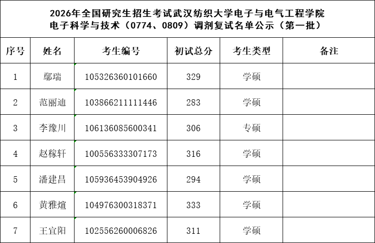 2026年全国研究生招生考试yl23411集团电子科学与技术(0774、0809)调剂复试名单公示(第一批)