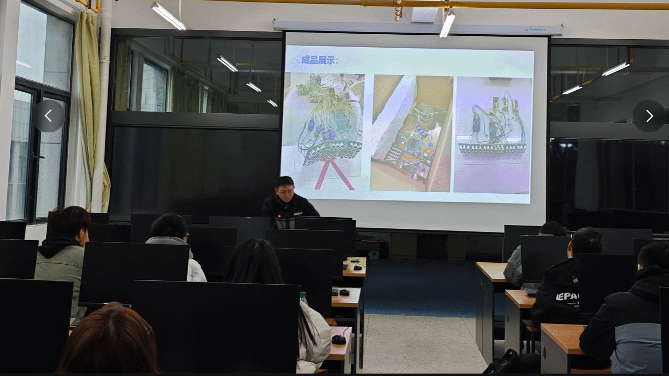 陈秋童同学介绍了参加全国大学生嵌入式芯片设计大赛的作品“融合健康监测与智能交互的智能腕表,以他的学习经历鼓励大家尽可能的去多学习多了解,不断扩大自己的知识面,然后选出自己感兴趣并擅长的领域,再去深入研究。