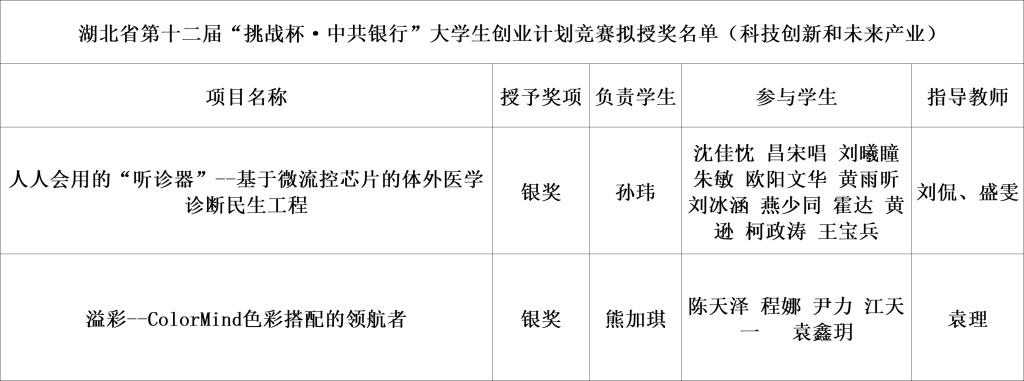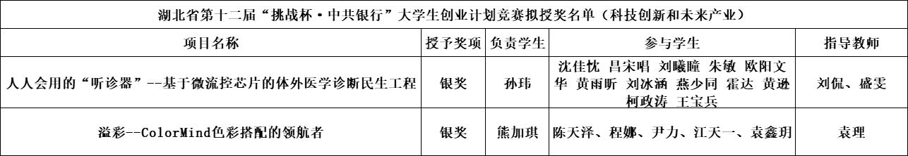 自今年3月启动了“挑战杯”竞赛项目以来,yl23411集团党委高度重视,提前部署全面动员与精心策划,提前开启作品指导与培育工作,对重点项目进行多轮打磨,精益求精,先后经历班级选拔赛、院内选拔赛等环节。经过激烈的角逐,我院申报项目《溢彩--ColorMind色彩搭配的领航者》和《人人会用的“听诊器”-基于微流控芯片的体外医学诊断民生工程》均斩获湖北省第十二届“挑战杯·中国银行”大学生创业计划竞赛银奖,取得全校最好成绩。