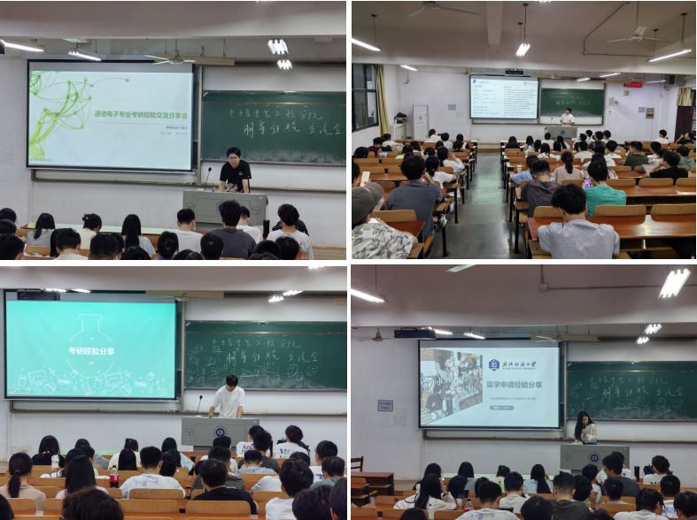 首先,电信12104班朱道爽同学从确定目标院校,增强学习动力方面进行介绍。谈到备考时,需重视基础知识,扎实掌握80%基础内容就能取得不错成绩。同时,保持良好心态也尤为关键,避免盲目与他人比较进度,专注自身知识吸收;通信12101班梅寒同学从硬实力与软实力两方面展开分享。他强调要重视学科成绩,尤其是数学和专业课,合理选择考试科目。在软实力上,需精准评估自身实力,审慎考量目标院校风格及复试规则,做出最优选择,并做好整体规划与心态调适;电信12106班许文祥同学梳理了保研各阶段时间节点,建议同学们关注竞争形势,做好自我评估,合理安排学习时间,定期反思复盘,在备考中保持坚定与努力;电气12103班王诗仪同学分享了申请美国约翰霍普金斯大学的经历。她指出,留学要明确动机,审慎选择国家与学校,采用合理申请策略。提前两年准备,认真打磨文书,管理好心态,拒绝焦虑,找到最适合自己的院校。