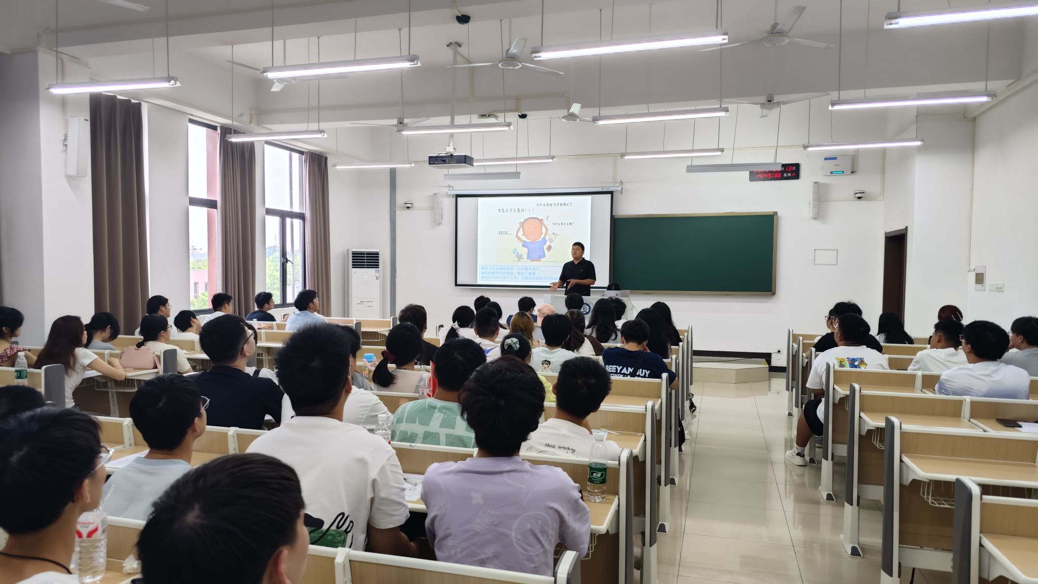 学校心理健康教育中心张万里老师以“解锁大学适应力”为主题展开专题讲座。张万里结合新生常见的学业压力、人际焦虑等问题,通过案例分析、互动问答等形式,引导新生学会运用“时间管理四象限法”规划日常学习,鼓励大家通过参加社团活动、志愿服务等途径拓展社交圈,鼓励新生要勇敢尝试未知领域,在提升综合能力中找到自我价值。