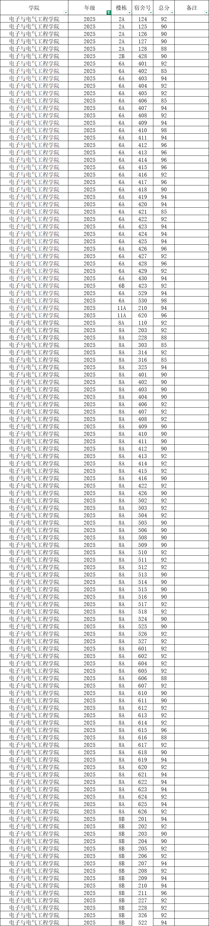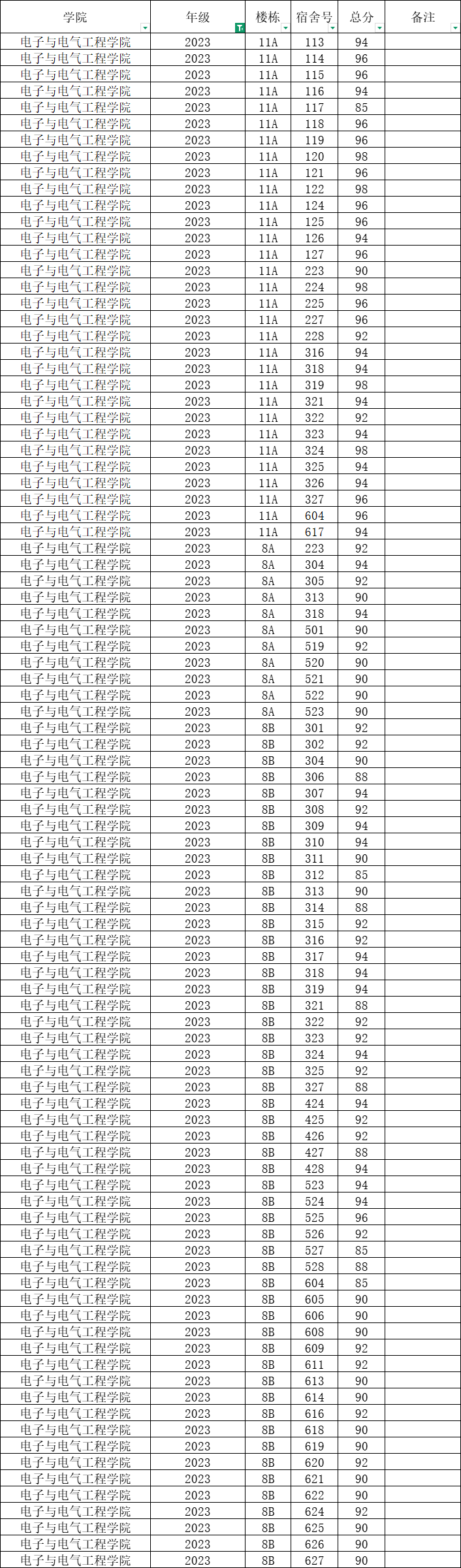 根据统一安排,现将学院本学期第6周寝室公检情况公布如下