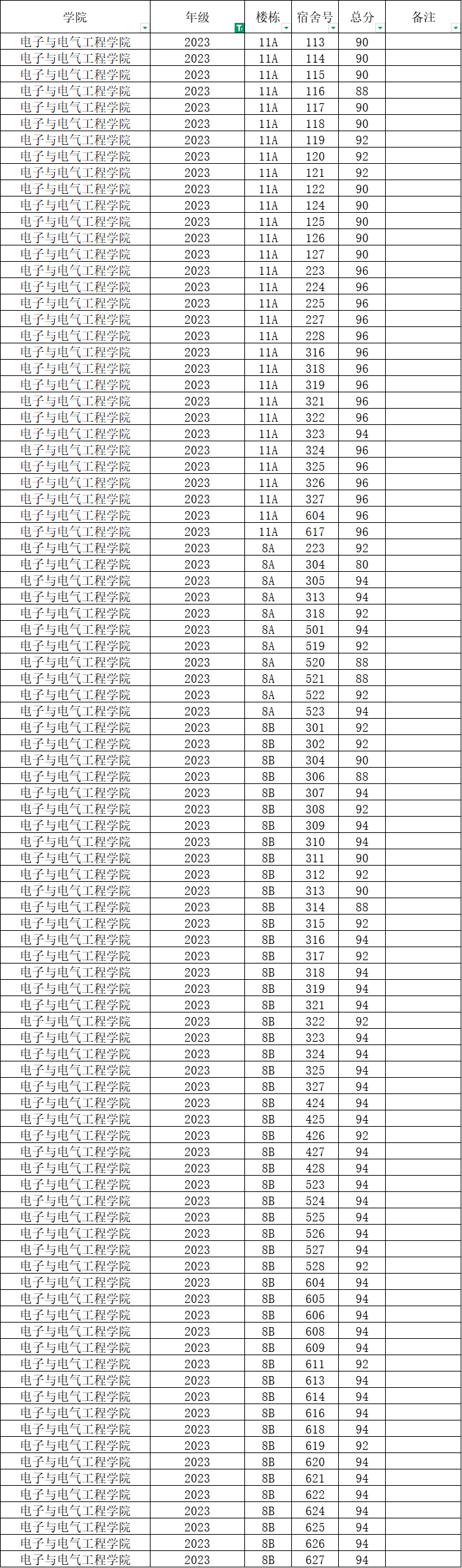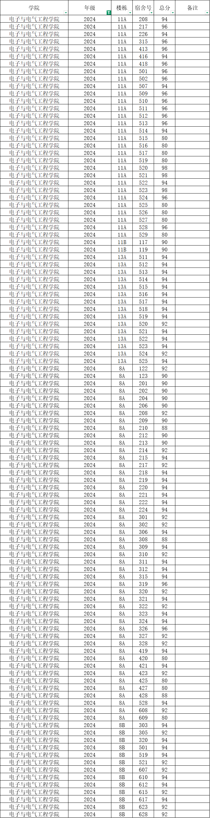 根据统一安排,现将学院本学期第7周寝室公检情况公布如下