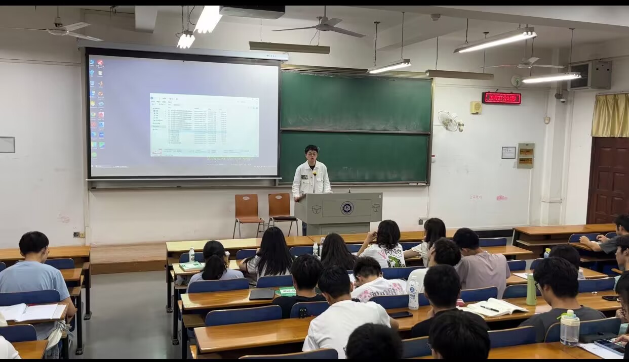 杨思伟详细讲解选调生的起源、工作性质、和报考的注意事项。随后结合自己的大学生涯,从学生工作、专业竞赛、基层实践等方面介绍了未来的就业选择方向。同时,作为省青马学员的他分享了自己如何一步一步靠近并最终走向选调生的过程。分享的最后他提出:“希望每个同学在大学结束时都能找到自己奋斗的方向,勇于尝试,愿青春不负年少、理想不惧未来,我在基层等大家!”