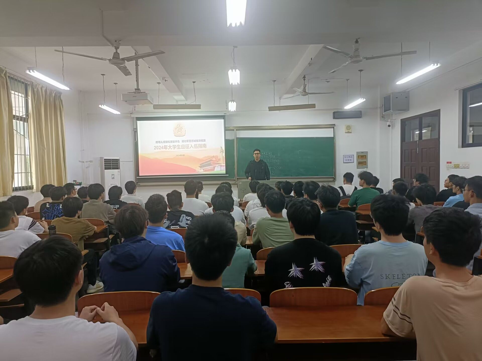 为进一步做好2024年秋季征兵工作,yl23411集团召开征兵宣传主题班会,本次班会旨在向一批有意愿参军入伍的大学生集中普及国家征兵政策以及大学生入伍优待政策,引导青年学子积极响应国家的征兵号召,为国家安全与发展贡献力量。