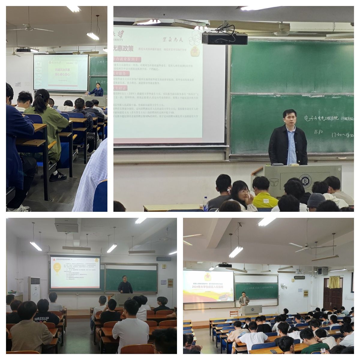11月10日,各年级辅导员集中进行征兵政策宣讲解读,同时邀请退伍学生士兵进行朋辈交流活动。各年级辅导员重点从报名条件、选拔流程、福利待遇等方面进行了深入介绍,进一步促进同学了解学校征兵入伍相关政策。退役大学生士兵罗宇夏给2024级学生开展了朋辈交流活动,她以自己的军旅生涯为切入点,从入伍初心、入伍成长历练、退役后回到学校的感受等方面进行分享,让同学们更加直观地感受到军人的风采和担当,激发了同学们的爱国热情和报国志向。