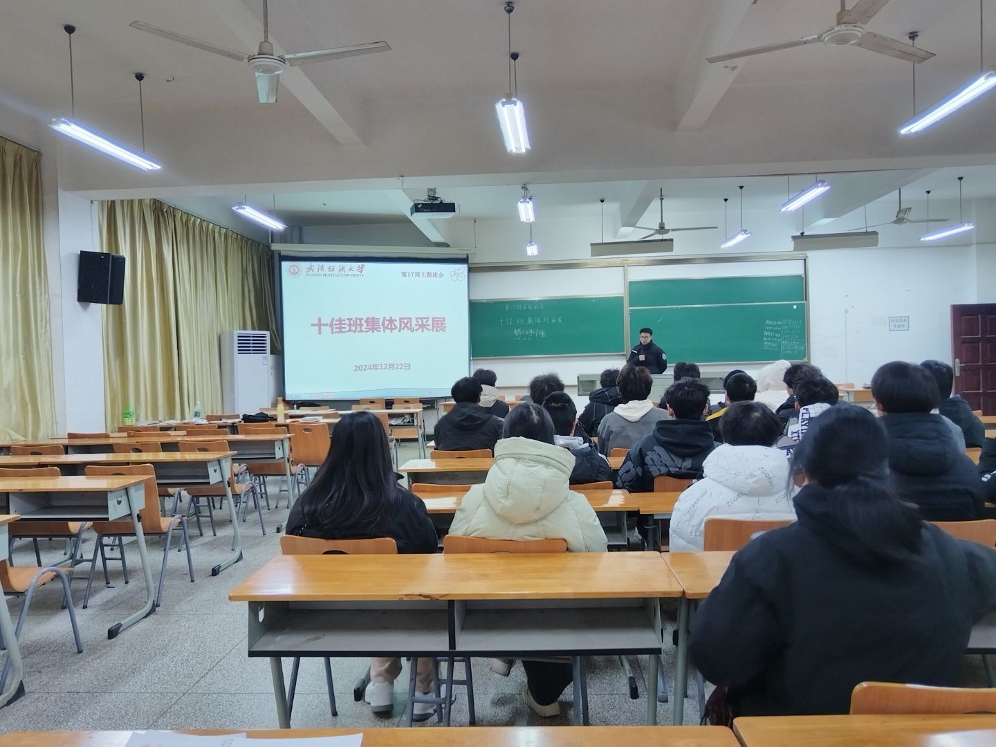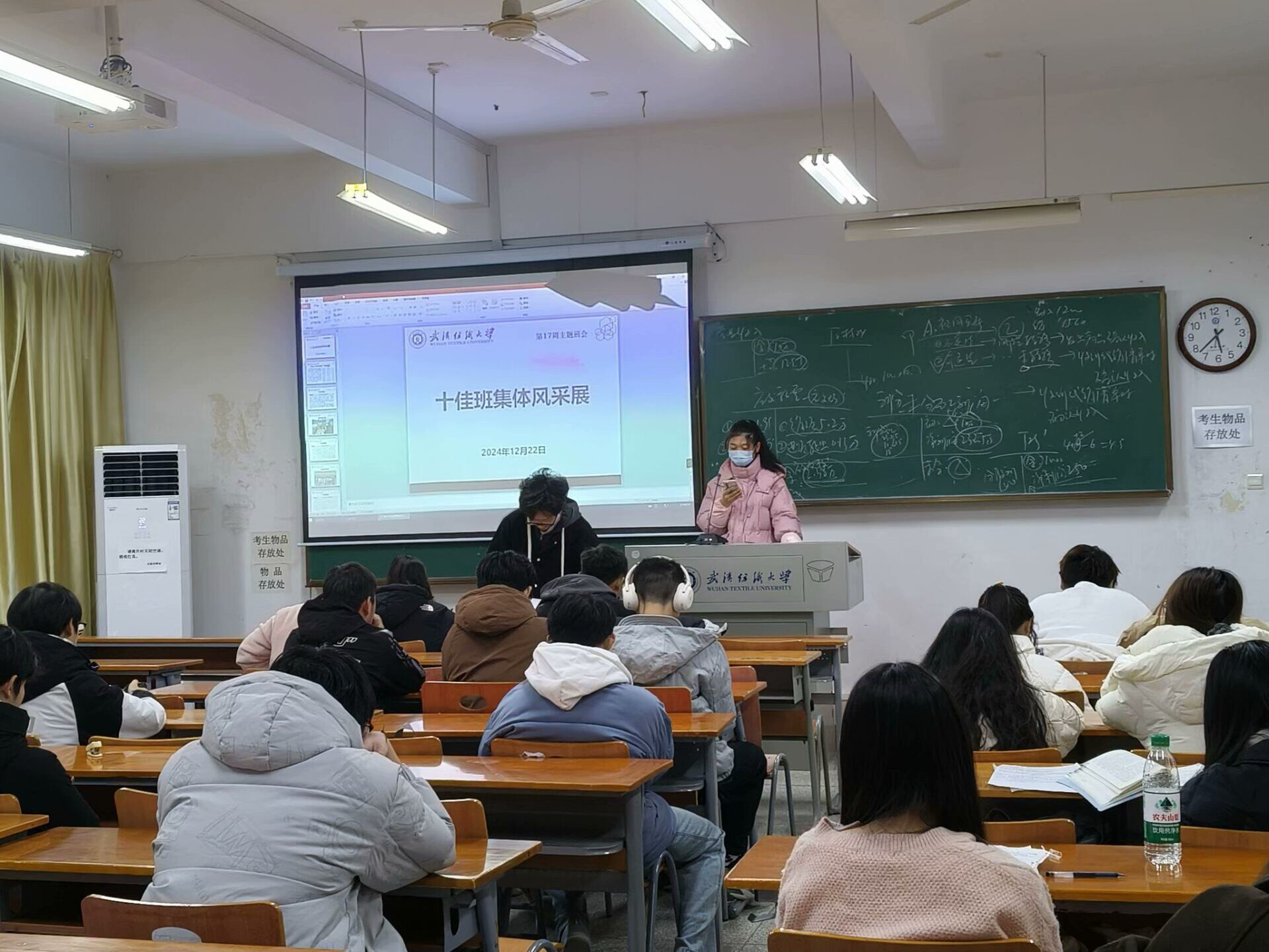 班会开场之际,首先深入阐释了此次评选工作所蕴含的深远意义,随后逐一呈现各个十佳班级的非凡魅力与卓越成就。外国语学院英语12202班党员及入党积极分子众多,更在各类竞赛中屡获佳绩,展现出强劲的实力与拼搏精神;服装学院服设12203班则以优异的学业成绩令人瞩目,无论是斩获各类重磅奖项,还是在专利申请以及志愿服务等多元领域,均有着极为突出的表现,彰显出全面发展的特质;经济学院金融科技 12201班与yl23411集团通信12301班,在竞赛获奖数量上表现卓越,奖学金获得人次颇为可观,学习成绩持续保持领先,无论是学科竞赛领域,还是文体活动舞台,都绽放出绚丽光彩;机械工程与自动化学院自动化12202班在学科竞赛、社会实践以及学术成果方面均成绩斐然,展现出深厚的学术底蕴与实践能力;伯明翰时尚创意学院环设62202班与计算机与人工智能学院软件12204班同样收获众多奖项,在学术竞赛的战场上一路高歌猛进,书写着属于自己的辉煌篇章。此外,资源与环境学院环科 12201班、化学与化工学院应化12101班以及传媒学院广告12202班的同学们,也各自有着独特的闪光点与可借鉴之处,值得全体同学深入学习与效仿。