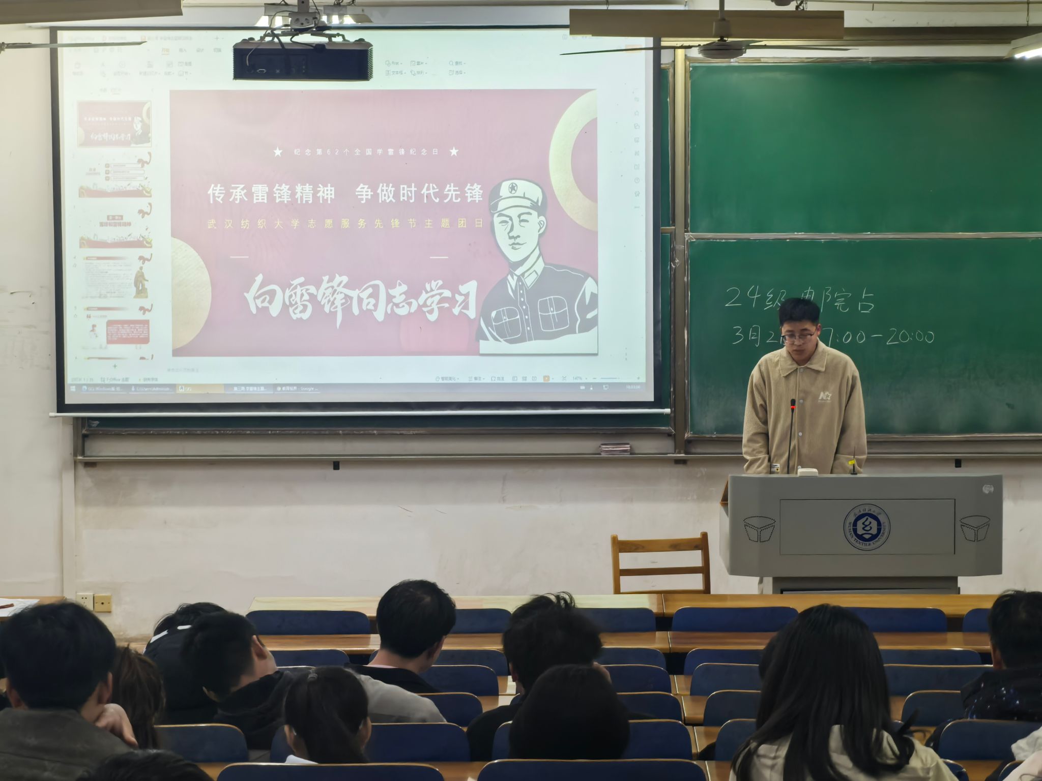 为大力弘扬雷锋精神,强化当代大学生的社会责任感,电子电气学院精心组织了一场以 “传承雷锋精神,争做时代先锋” 为主题的班会活动。此次活动在学院内引起热烈反响,取得了良好效果。