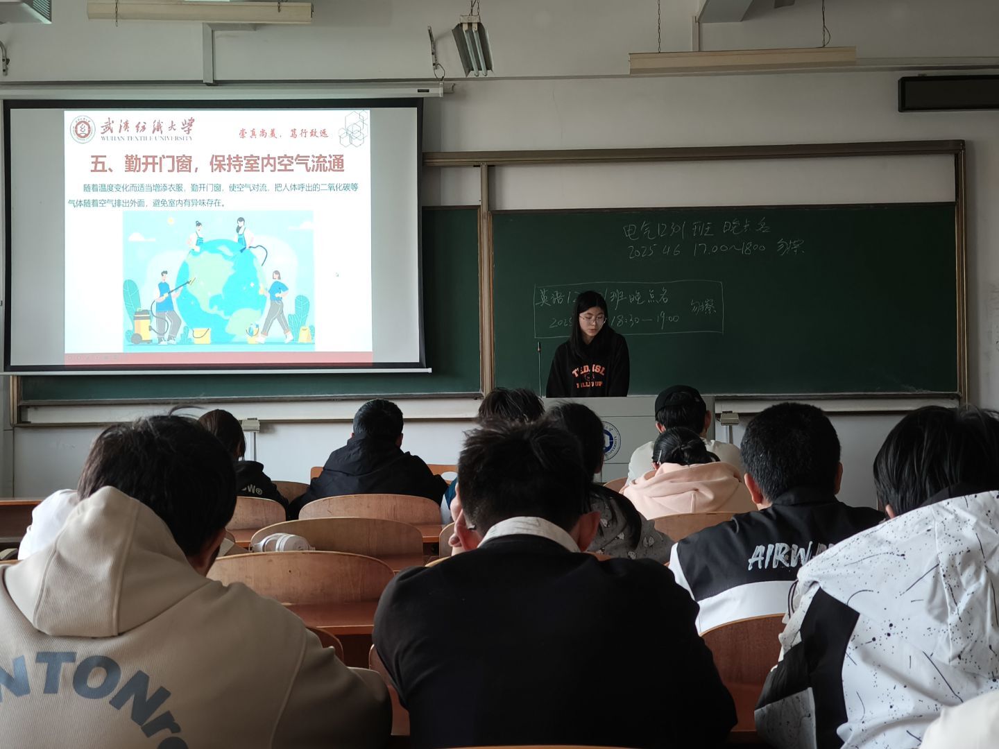 班会上,辅导员首先介绍了世界卫生日的历史。此外,介绍我国宣传的主题为 “保障母婴健康 呵护祖国未来”。随后,班会进入多维度健康知识科普环节,健康生活方式方面,强调合理饮食;注重个人卫生,勤洗手、用公筷;保证青少年每天 8 小时睡眠;鼓励积极锻炼、勤通风换气,并保持乐观心态。通过问答互动,同学们对 “健康四大基石” 等知识有了更深刻的理解。体重管理同样是重点,我国超半数人口超重或肥胖,肥胖关联 200 多种疾病。国家卫健委发布了减肥指南,还介绍了如华中地区四季食谱等针对性方案和主食优化等科学减肥方法。