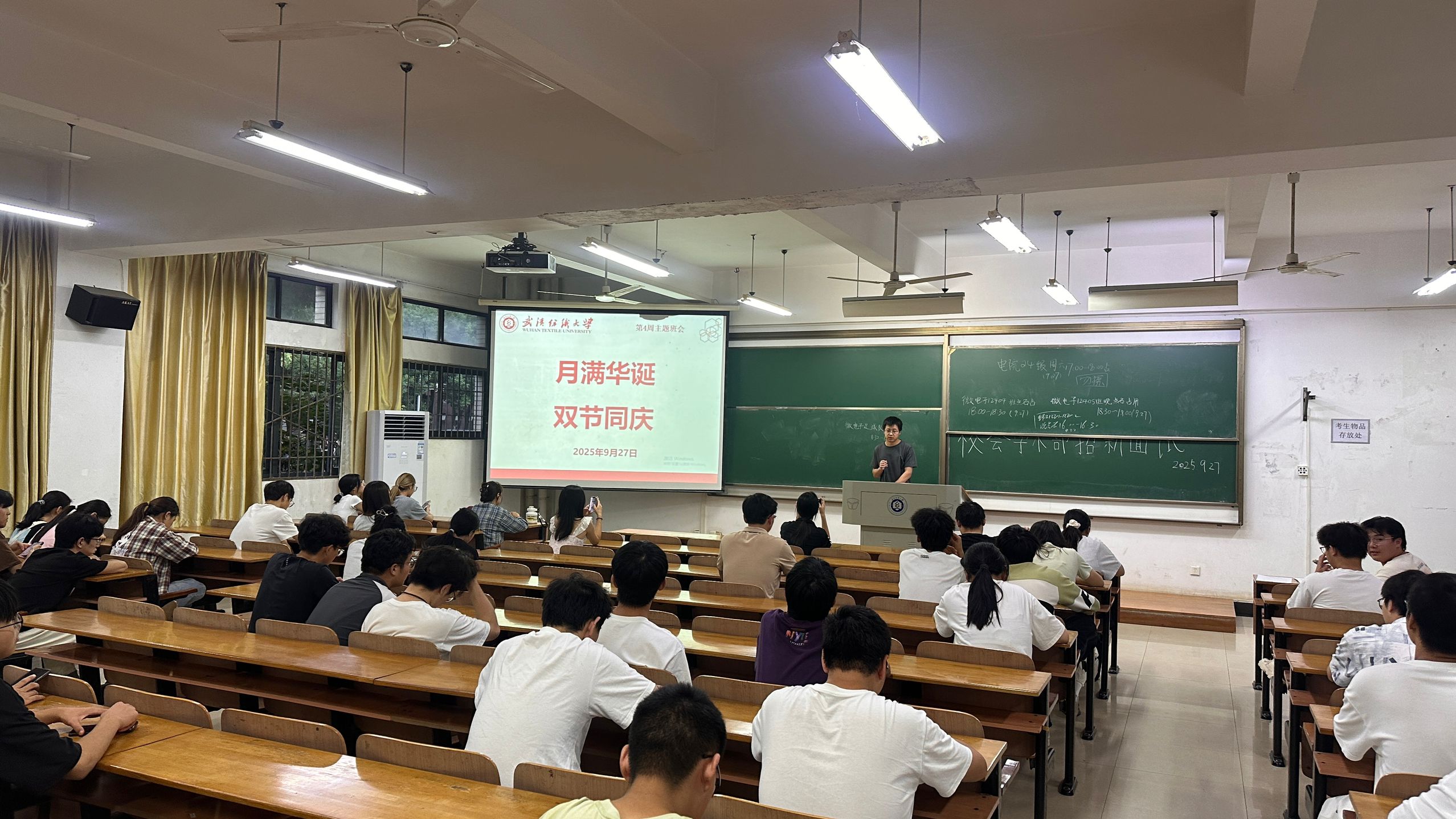 9月27日,电子电气学院以“国庆-中秋”为契机,召开“月满华诞,双节同庆”主题班会。当共和国的76载辉煌与中秋佳节的温馨月光交相辉映之时,电子电气学院师生通过这场庄重又温馨的特色活动,共鉴这份双节同庆的盛世华章。