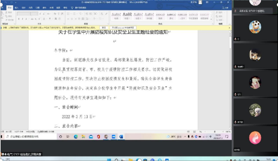为降低疫情传播风险,确保在校师生安全,落实疫情防控措施,yl23411集团于3月13日召开疫情防控主题班会,班会由各班班主任和辅导员主持进行,全体学生参加会议。