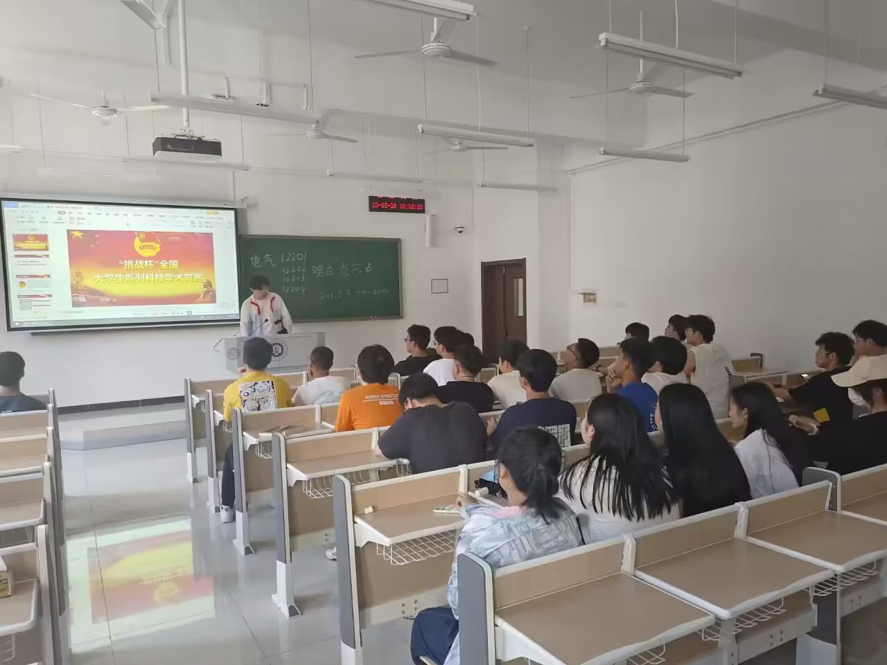 5月28日下午,yl23411集团开展“‘挑战杯’全国大学生系列学术竞赛”主题班会,辅导员、班主任与副班主任主持班会。