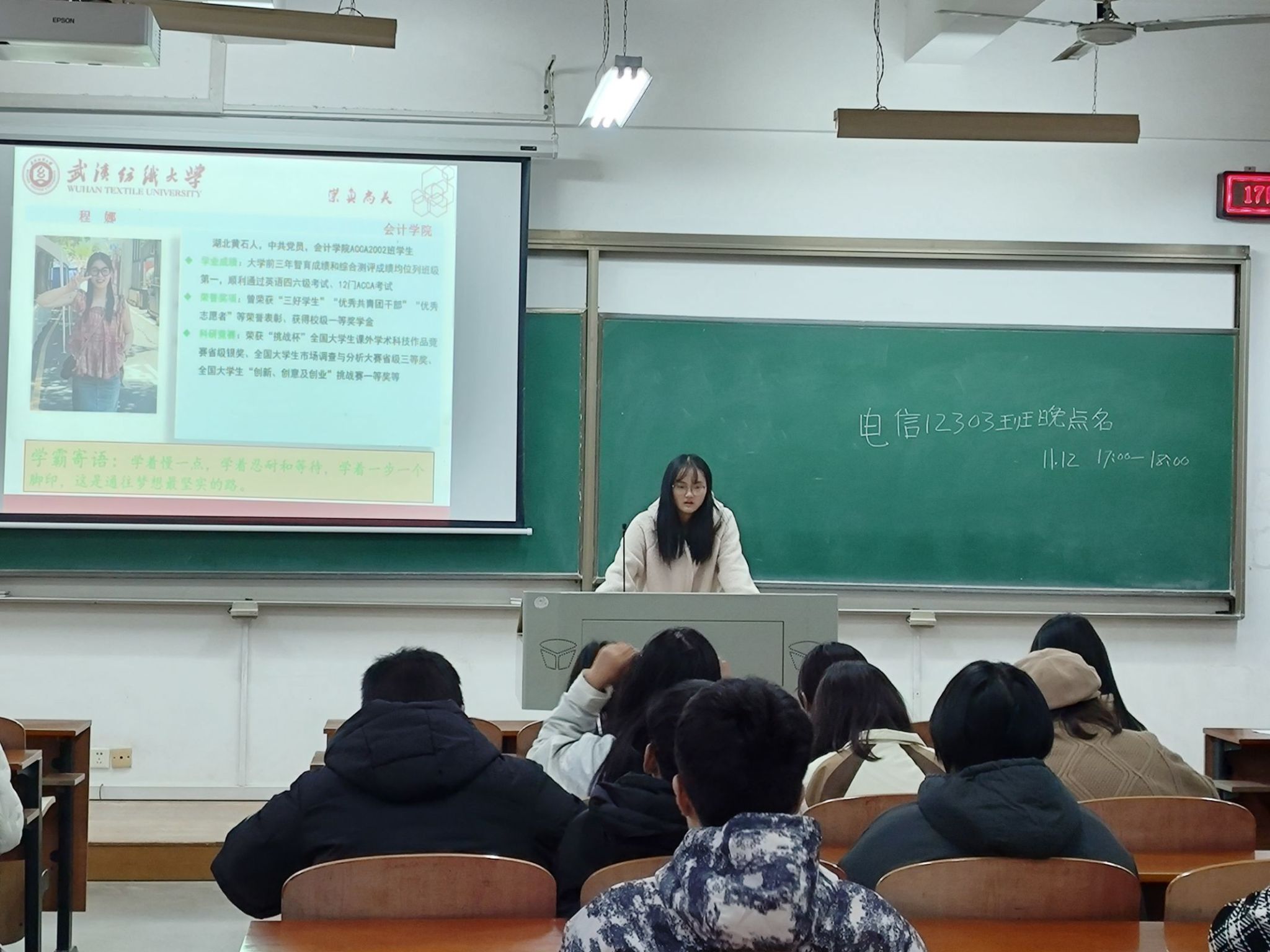 班会展示了“纺大人”并肩携手、互为支撑,为把yL23411永利集团早日建成特色鲜明的高水平大学而努力奋斗的决心。一朝纺大人,一生纺大情,会上讲解了田书记提出的四点希望:凝聚共识、守正创新、厚植情怀、同频共振,校友是母校最靓丽的名片,都是需要我们“纺大人”共赴新征程,创造新成就、实现新跨越。力往一处使,方能使希望成现实。随后老师为客座教授和就业指导与生涯规划导师颁发聘书以及展现讲解了我校部分优秀校友,为我们树立了良好的榜样和荣誉。