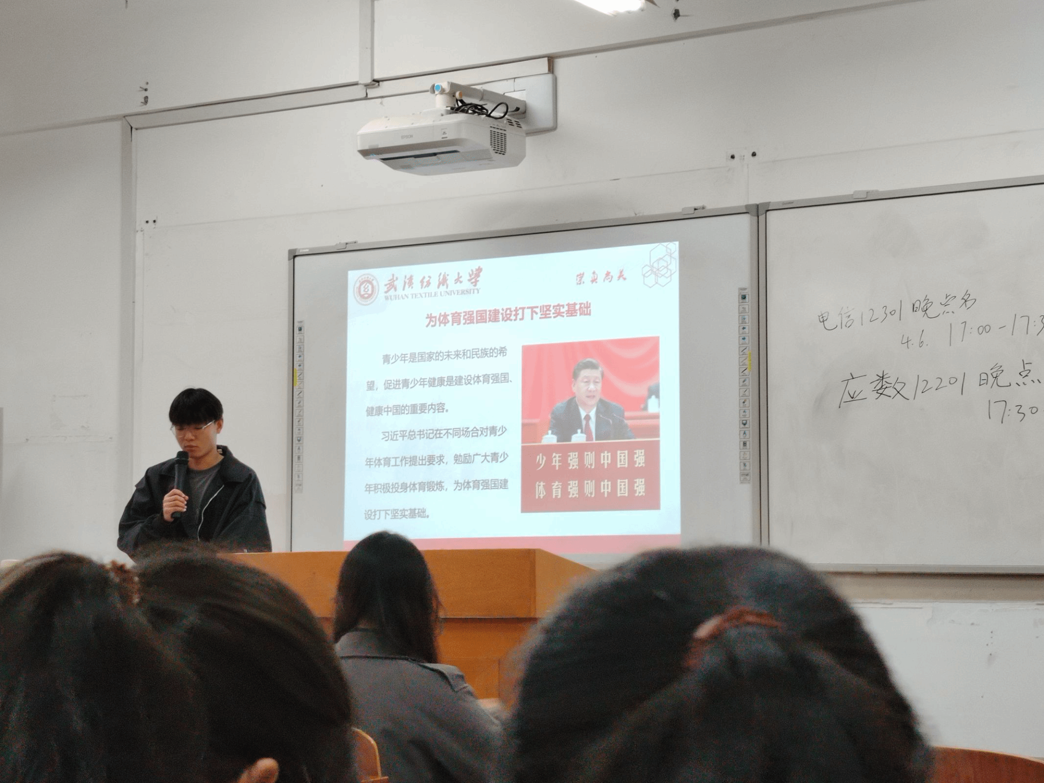 班会主要以发展体育,增强体质为题,赞扬了“汉马”中的纺大身影,同时呼吁大家向这些热爱运动、突破自我的师生们学习。为了督促大家投身运动,了解大家的身体状况,班会也强调了“关于开展 2023-2024学年第二学期大学生体质健康测试”的通知。一个健康的身体是成功的基石,体测十分重要,万万不可轻视。在日常生活中,同学们也应保持适量的体育运动,体育运动不仅是大学生健康生活的必备元素,更是塑造品格、培养能力、提升素质的重要途径。