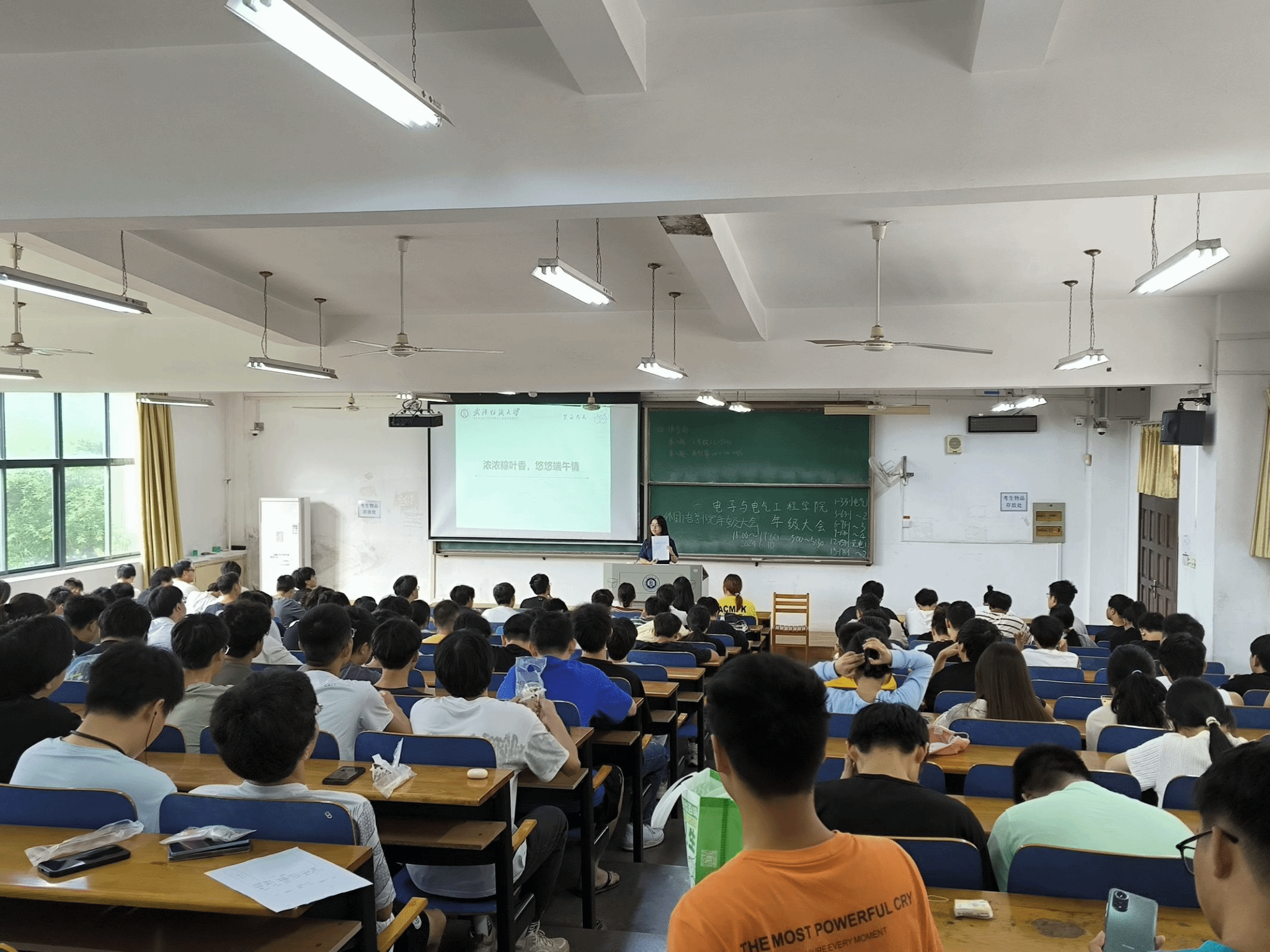 会上辅导员向学生们提到“传承民族基因,弘扬爱国情”、“节分端午自谁言,万古传闻为屈原。”屈原无疑是最醒目的端午文化符号。这一天,重温浓情假日,更感受到奋勇争先的民族精神、炽热深厚的爱国情怀。在端午节来临之际,各地举办了形式多样的活动,旨在传承和弘扬中华优秀传统文化,增强文化自信和归属感。端午节期间,各地还通过赛龙舟、制作和佩戴香囊、挂艾草等传统习俗,展现了浓厚的节日氛围。千百年赛龙舟,赛的是江河上同舟共济、奋勇争先,展现时代大潮中的上下求索。这些活动不仅弘扬了传统文化,还通过寓教于乐的方式,传承了爱国情怀,增强了社会凝聚力和文化自信。会上辅导员还开展爱国主义精神教育,引导学生们深入了解国家的历史、文化和传统,激发学生们的爱国情感和民族自豪感。