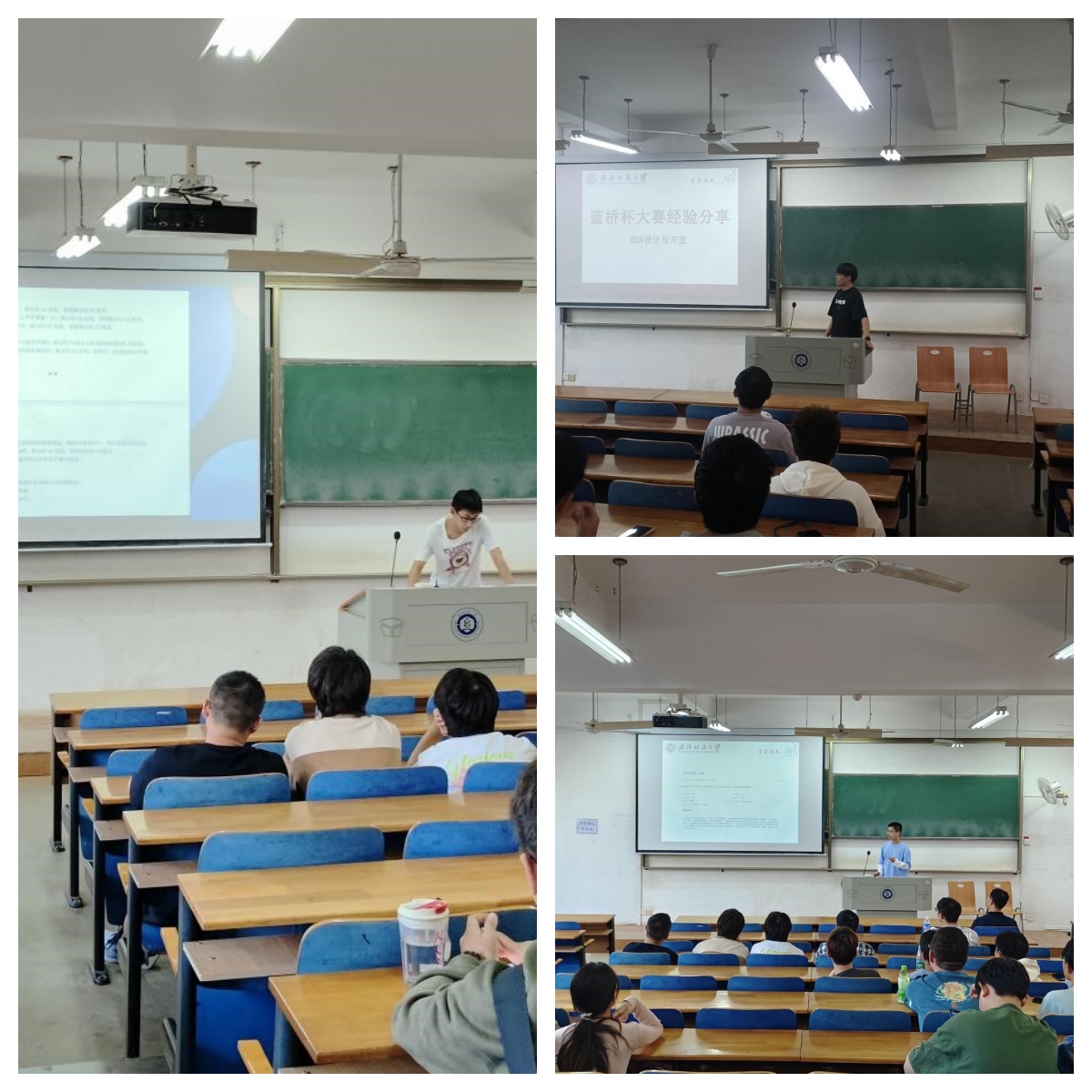随后,朱道爽、唐晔、黄猎越等3位同学结合自己今年参加“蓝桥杯”参赛经历,就如何学习EDA设计,如何准备比赛做了详细介绍,黄猎越还以应届毕业生的身份介绍了自己找工作的打算和为找工作所作的准备,他表示自己对于考研和就业正在同步进行,自己在学科赛事中积累的一些经验,一定可以助力自己很好的落实就业去向。
